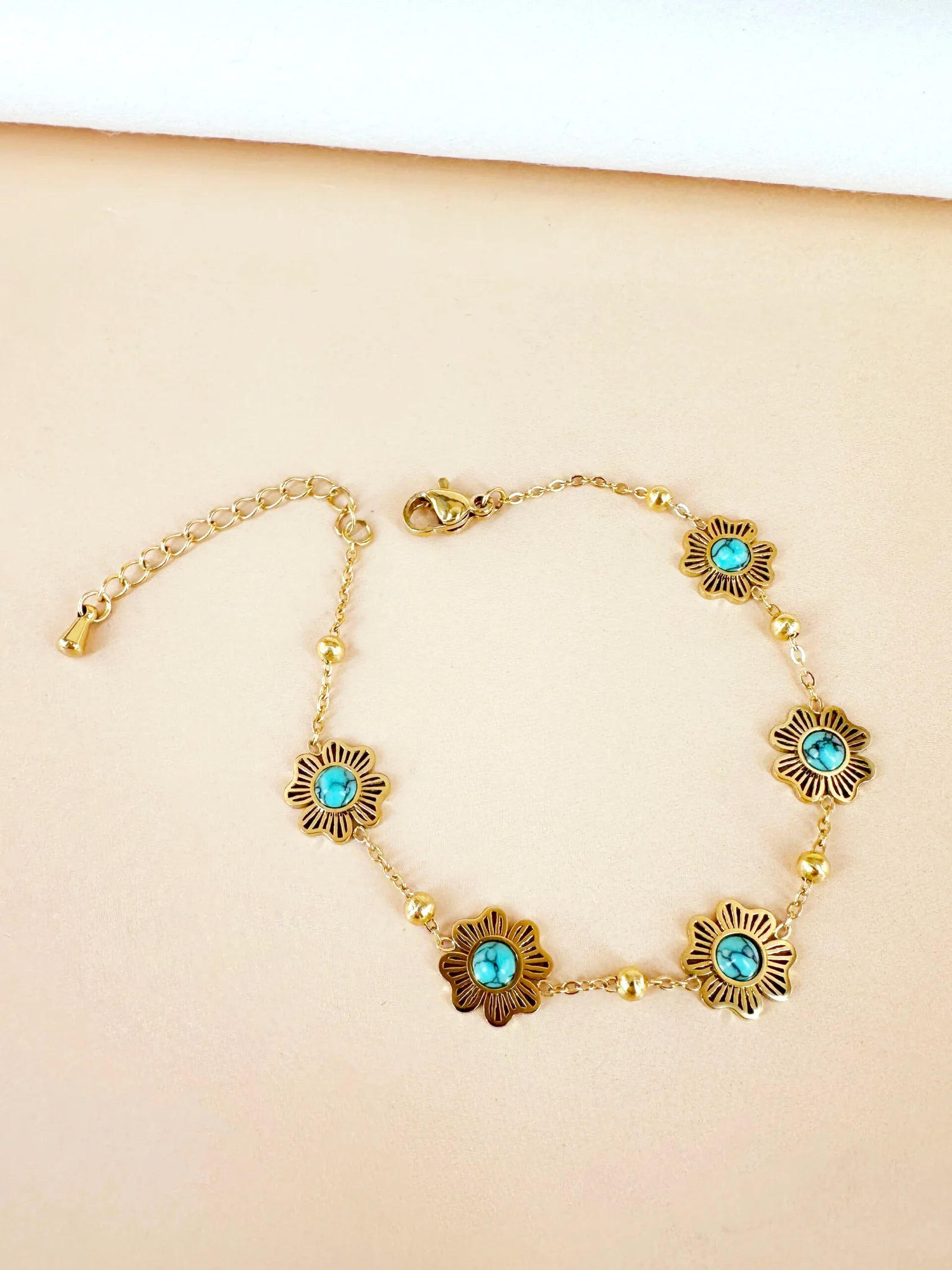 Bracelet Léa avec fleurs et perles turquoises en acier inoxydable